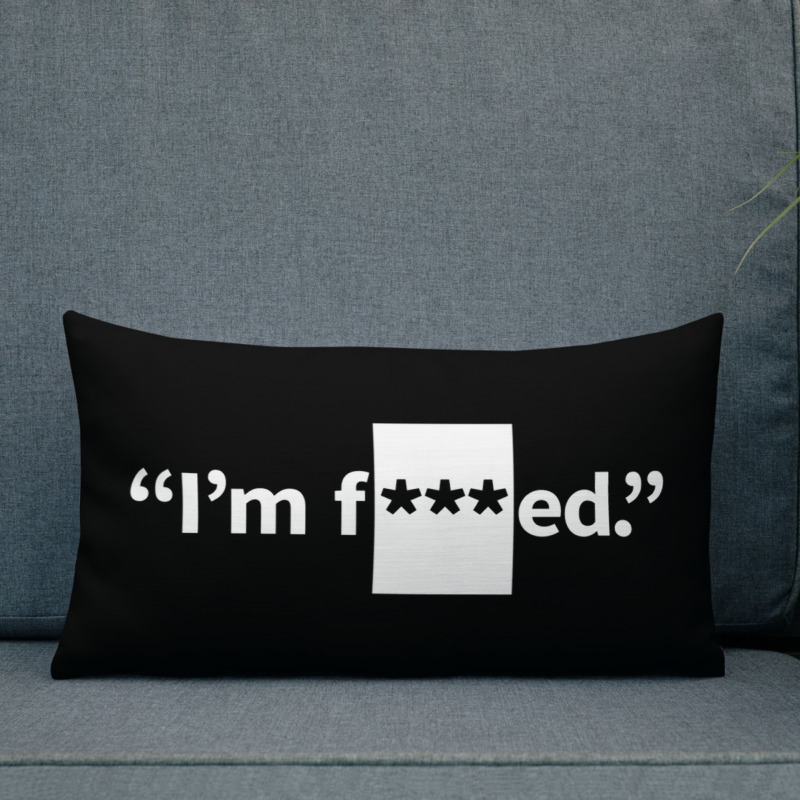 "I'm f***ed." pillow by MuellerRedacted.com.